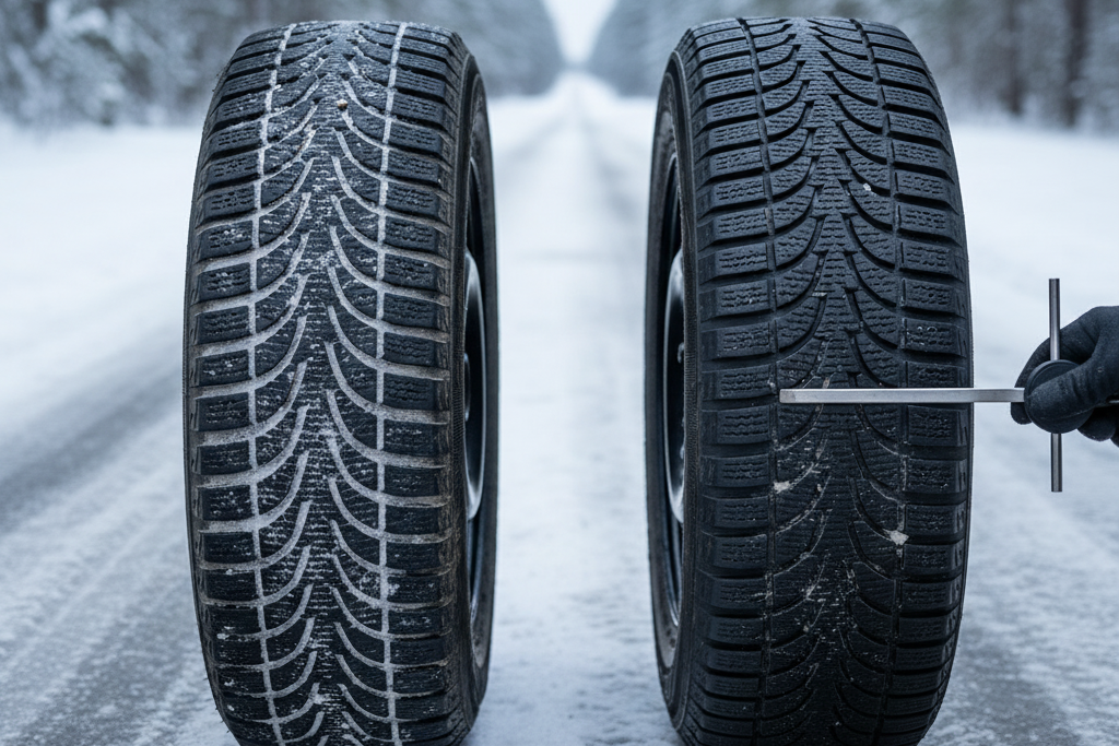 Riepu protektora dziļuma ietekme uz veiktspēju sniegā un uz sala